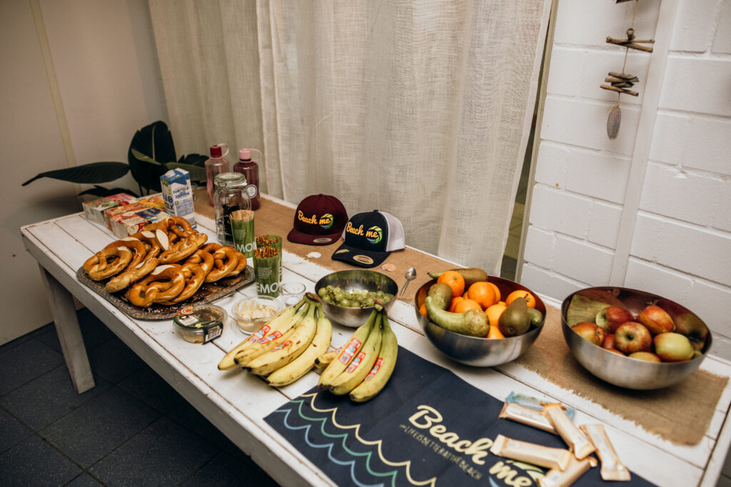- Snackbar: Es wird es eine Snackbar geben, an der du dich den Tag über mit Laugengebäck, Obst, Müsliriegeln, Kaffee und Co. eindecken kannst, solange der Vorrat reicht.